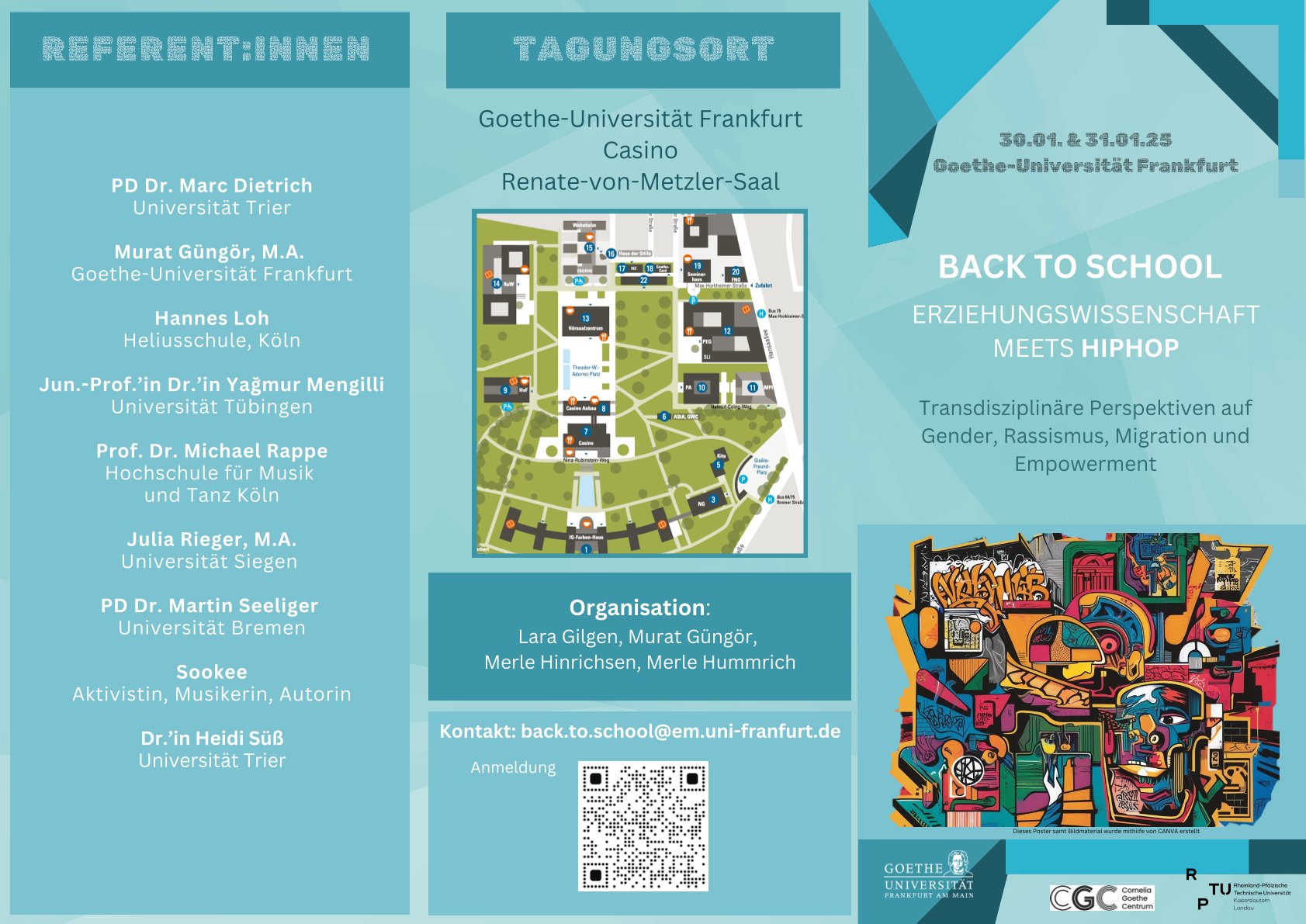 Die Tagung „BACK TO SCHOOL. Erziehungswissenschaft meets HipHop“ findet am 30. und 31. Januar 2025 an der Goethe-Universität in Frankfurt statt. Die Tagung fokussiert Fragen rund um das Verhältnis von Schule, Jugend und HipHop in einem erziehungs- und bildungswissenschaftlichen Kontext und beleuchtet die HipHop-Kultur in ihren Konfliktlinien zwischen Gender, Migration, Rassismus und Empowerment. Interessierte sind herzlich Willkommen!
